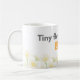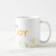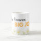 A cute and cheerful daisy mug featuring the quote “Tiny flower, big joy”.