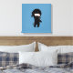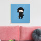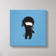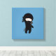 Lycklig tecknad ninja klädd i svart med arm upphöjt i väv. Traditionellt japanskt svärd katana kan ses fäst på axeln.