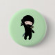 Lycklig tecknad ninja klädd i svart med arm upphöjt i väv. Traditionellt japanskt svärd katana kan ses fäst på axeln.