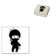 Den tecknad ninja-tjejen är klädd i svart men för en liten buk ovanpå hennes huvudmask. Traditionellt japanskt svärd katana kan ses fäst över hennes axel.