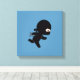 Cute tecknad ninja klädd i svart springer medan man håller en kaststjärna.