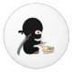 Den underbara lilla ninja som är klädd i svart viker en biet av papper i en kaststjärna. Stjärnorna (shuriken) är traditionellt ninja-vapen. Japanskt katanasvärd är stoppat över ryggen.