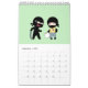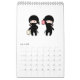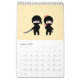 Cute tecknad ninjas går runt sin verksamhet på sidorna i den här kalendern.