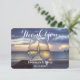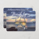 Visa din uppskattning i stil med vår lilla solnedgång på Beach Wedding tackkort. De här korten har en enastående solnedgång och innehåller information om eleganten. Det är perfekten att tacka dina gäster för att de har delat med sig på din speciella dag. En vacker, hjärtlig keepy!
