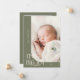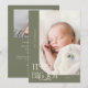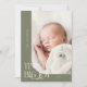 Elegant och ett modernt jultema med ett typografiskt kort som säger "pytter stor glädje". Det här är ett födelsemärke för julhelgerna! Lägg till foton, födelsestatus och ett meddelande! Bakgrunden är sage grönt.