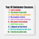 Här är de tio främsta simpla ursäkterna för att inte träna eller simma tillräckligt hårt. Underbar gåva till din simmare eller simma tränare. Simmans tränare har hört dem alla!