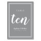 Denna utformning skapades för mindre intima bröllop firande. Den enkla, minimalistiska och elegant bröllop-Bordsnumret TEN-utformningen har en contemporary med dubbla ram gräns i skarp vit på chicens ultimata grått-bakgrund. Chicens utformning är tidlös men ändå modern sofistikerad. Anpassa designen i bröllop bord med dina bröllop-detaljer i skarpa, vita bokstäver och skript. Kortets baksida är en dubblett av framsidan. Beställ en för varje bord med de enskilda bordsnumren. Bord ONE genom TEN är individuellt designade och finns i min butik bjudna in till Zazzle. Om du behöver ytterligare nummer skapas du särskilt för en mindre plats, men skicka e-post till oss på InvitationSuites@gmail.com.