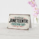 Den här designen har en klassisk och tidlös estetik att hedra minnet av den tionde juni, även kallad Frihetsdagen. Utformningen visningar på en framträdande plats "CELEBRATING JUNETEENTH: FREEDOM DAY" i en stil som påminner om vintagens skylt, komplett med stjärnor och gräns. Denna teckning ger en respektfull signal om den historiska betydelsen av frigörelsen av förslavade afrikanska amerikaner. det bestående budskapet om frihet och jämlikhet med detta tidslösa Junettonde utkast