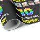 Den här roliga och djärva födelsedagskalemat som omsluter papper design har ett stort nummer "10" med ett multifärgat regnbågsspektrum som inspirerar gradienten mönster, plus meddelandet "Lycklig 10:e födelsedagen" och en personlig mottagare namn. Det finns även foton som kan vara personlig, kanske med foton av mottagaren, mottagarens familj och vänner och/eller presentens avsändare. Glatt födelsedagstext papper som denna kan användas när en gåva eller present i firande på någons tionde födelsedag är ge. (Photography © Storytree Studios, Stanford, CA.) [~Z0000670]