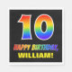Den här roligten, som är färgstark och glad med den pappra napkindesignen, har ett stort nummer "10" och meddelandet "GRATTIS PÅ FÖDELSEDAGEN,", båda färgader med en regnbågsspektrumövertoning som inspirerade mönster, tillsammans med en fet gult anpassade mottagare namn. Bakgrunden är svart på färgad. Roligt, skräddarsydda pappra servetter som detta kan användas vid en party som hålls för att fira någons tioårsdag. [~Z0000476]