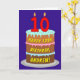 Den här populära och roliga födelsekortsdesignen innehåller en bild av en treskiktad födelsedagskalas med sifferformade ljus överst som visar åldern 10, tillsammans med meddelandet "LYCKLIG 10:e BIRTHDAY" och en anpassningsbar som tar emot namn. Insidan har ett hälsning-meddelande på anpassningsbarnas födelsedag, eller kan kanske tas bort och lämnas tomt om ett meddelande ska skrivas för hand i stället. Ett glatt hälsningskort för personliger som detta kan skickas i firande på någons tioårsdag. [~Z0000620]