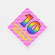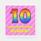 Den här populära och roliga pappra napkindesignen med 10 års födelsedag har ett stort nummer "10" som har en färgstark mönster inspirerad av ett regnbågsspektrum. Det innehåller också budskapet "10:e födelsedagen i Lycklig", följt av en personlig namn. Bakgrunden har en ljus rosa och mörk rosa rand mönster som innehåller levande hjärtformer av rosa. Roligt, pappra blöjor av personlig kan användas vid en firande som hålls för att hedra någons tioårsdag. [~Z0000417]