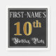 Den lyxiga och finare-födelsedagstexten som kallas papper napkin-design har ett anpassade namn och meddelandet "10:e Födelsedagsfesten". Det stora talet "10:e" har en imitation/faux guld-inspirerad färgning av mönster, ord "Födelsedagsfest" är i opulent text med skript-stil och bakgrunden är färgad svart som standard (även om den kan anpassas). Elegant, ornerade pappra blöjor av detta slag kan vara användbara om de hålls i firande vid en födelsedagsfest/firande på någons tioårsdag. [~Z0000565]