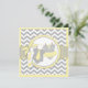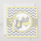 En söt gender visar ett inbjudningskort för en part som innehåller chic grått och vit chevronutskrift och en adjektiv jumper med en gult och en söt tutu.