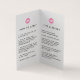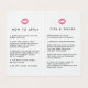 Med mappade kort i chicen kan du din kontaktinformation, dina programinstruktioner och tips och tricks, utan att behöva trassla med extra-kort! Designen innehåller ditt namn och/eller ditt företag namn på framsidan, accentuerad med en bild av vattenfärgsblocket pastel. Den fyrsidiga designen är förtryckt med programtips och ytterligare tips och tricks på insidan (fyllda med rosa lip print kiss-illustrationer), och din affärsinformation, dina kontakter och social-medieprofiler på framsidan och baksidan. Anpassa den befintliga texten eller lämnan i befintligt skick.
