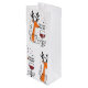 A funny and cheerful Christmas holiday design showcases a reindeer wrapped in festive lights, holding a glass of red wine, surrounded by colorful stars. The handwritten text says, "Tipsy and Bright." This delightful design is available on a variety of products, making it a perfect gift for wine lovers.