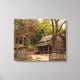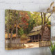 Höstlövningen visar det lysande färg på en landsväg i rökbergen. Tipton Cabin ligger i Cades Cove och är vacker under alla fyra säsongerna.