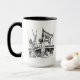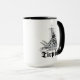 Mug with drawing of two German sailors of the famous German battleship Tirpitz of world war II and the name of the ship written with fraktur letters.