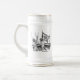 Krus med teckning av två sjömän från den berömda tyska slagskeppet Bismarck från andra världskriget med fartygets namn skrivet med fraktur bokstäver.