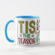 Bring festive cheer to every sip with this bright “’Tis the Season” mug! Decorated with holiday colors, snowflakes, and a candy-striped candle, this blue-handled cup is the perfect way to celebrate the warmth and joy of the season.