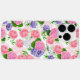 Vattenfärgen mönster med olika blommor och blå målfåglar med vattenfärger.