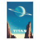 Titan och den ringade planeten Saturus Vintage Stil Space Art.