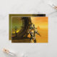 Konstnärliga, färgstarka och ljusa bilder av science fiction i gult,grönt,brunt,vitt färg. Titan cyborg från Hyperion med sitt sjudande reflekterande metallsköld i en surrealistisk miljö med pyramider, hett Sol, öknar som liknar ett egyptiskt landskap, animerar ram från 3D-filmen Hyperion World .