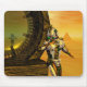 Konstnärliga, färgstarka och ljusa bilder av science fiction i gult,grönt,brunt,vitt färg. Titan cyborg från Hyperion med sitt sjudande reflekterande metallsköld i en surrealistisk miljö med pyramider, hett Sol, öknar som liknar ett egyptiskt landskap, animerar ram från 3D-filmen Hyperion World . Det är också en vacker gåva till jul, Helgdagar och särskilda tillfällen.