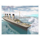 Berömd Titanic-frakt som flyter bland isberger på vatten med grumlig dag