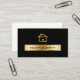 Flott mall för visitkort för fastighettitelföretag däribland en guld- kulör företagsnamnemblem som skrivs digitalt ut på bekläda, tillsammans med modern visitkortorientering i en design för två sida med hussymbol.