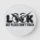 En lekfull och fast design som ger dig allt med bara en blick. Den här feta svarta och vita teckningen har den ord-"LOOK" ovanför ett par tecknad ögon som uppmärksammas omedelbart. Med det milda men tydliga budskapet "MEN BE DON'T TOUCH" under sig är denna utformning perfekt för alla som kärlek en blandning av humor, gränser och konstnärligt fläkt. Oavsett om det är tryckt på en poster, skjorta eller ett klistermärke är det säkert att folk leker - och tänka två gånger.