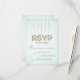 Den här bröllop OSA-kortdesignen från The Spoted Olive™ har en mjuk akvabas-bakgrund med en bild av direktuppspelningsgungor som kommer uppifrån och ord "OSA" fyllda med en bild av guld glitter. OBSERVERA: DEN HÄR KONSTRUKTIONEN INNEHÅLLER ENDAST EN SKRIVEN BILD AV GLITTER; DET FINNS INGEN FYSISK GLITTER SOM ANVÄNDS ELLER INGÅR I; DET FINNS INGA EMBELLISTER. DET HÄR ÄR EN FLAT SKRIVEN INBJUDAN. Copyright 2014-Present | Spoted Olive™ | Alla reserverade Höger