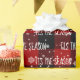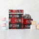 Vit "TIS" SEASON-texten med snöflingor på röd och svart buffelbaksida. Text och färg kan redigeras.