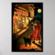 Dekorera muren med en fantastisk vintage Halloween poster med en häxa tittar genom ett fönster där barn bobbar för äpplen på Halloween-natten.