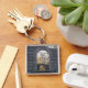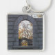 Tittar igenom fyrkantig silverfärgad nyckelring