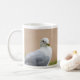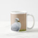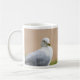 Kaffet mugg som ligger nära porträtt i ett fiskmås som vilar på en strand i Mackinaw City, Michigan, Förenade Stater. Gulls eller fiskmås är sjöfåglar av familjen Laridae. Tittar du fler utskrifter eller produkter? Besök gärna min butik: http://www.zazzle.com/timelessmomentsphtgy Det här fotot togs av Jennifer White med Timless Moments Photography. Alla bilder är upphovsrättsskyddade © Timless Moments Photography.