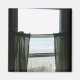 Tittar ut i havet från strandhusets fönster
