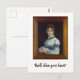 Det här vykortet innehåller en målning av en kvinna i blå klänning. Bild har ett stort virke ram och kvinnan säger: "Tja, välsigna ditt hjärta."