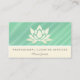 Ett affärskort för professionell av blommigt som kan anpassas till ett stort antal yrken, inklusive makeup-, skönhets- och spaindustrier, till en städning tjänst, husdjursskötare eller maid. Utformningen består av en lotus-blomma av elegant på en grönt som är täckt av spets. I ett krämavsnitt läser typografiktexten professionell städning tjänster i grått, följt av ditt namn eller ditt företag namn. Anpassa genom att lägga till din fullt- och kontaktinformation på baksidan.