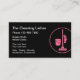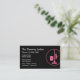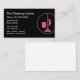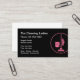Enkel utformning av affärskortet för städning service med rosa städning emblem som har en mopp, mopphylsa och gummihandskar för städning. Designad för ett hushållslag eller en oberoende-professionell som städning hem eller kontor.