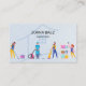 Affärskortet städning av tjänst är dekorerat med en pastellbakgrund för färg och en intressant tecknad av arbetarna. Bästa för affärs- eller bostadstjänster för städning, husdjursskötare, stödtjänster, hemtjänster och humanitära tjänster.