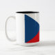 Utformningen är utmärkande för den tjeckiska flagga (som även är känd av namn i kort-form, Czechia), som är en inlandsstat land i Centraleuropa. Tjeckien gränsar av Österrike söderut, Tysklant till västern, Polen till nordost och Slovakien till sydöstra delen. Tjeckien har ett klimat i kulisserna med ett mestadels tempererat kontinentalt klimat och oceaniskt klimat. Dess huvudstad och största stad är Prag. Andra större städer är Brno, Ostrava, Olomouc (Olomóc), Pilsen (Plzeň) och Liberec.