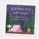 Tjej glamping födelsedagsfest servetter med ett sött rosa tält och lägereld på en stjärnklar nattlig skogsbakgrund. Dessa söta tjejer camping födelsedagsfest servetter kan enkelt anpassas för ditt evenemang genom att helt enkelt lägga till dina uppgifter i den teckensnittsstil och formulering du väljer.