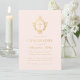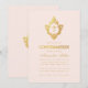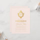 Denna eleganta rosa och guld bekräftelseinbjudan med en gammal stämning, rekommenderas för en flicka, har en gammal blomsterprydd vapensköld med kors i, båda i falskt guld folie. Flickans namn är skrivet med en elegant kalligrafisk stil. Texten har en gyllene färg liknande den falska guld vapenskölden. Bakgrunden är rosafärgad.