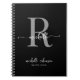Tjejaktig Elegant Svart Grå Kokbok Recept Monogram Anteckningsbok