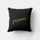 Flickaktig minimalist enkel ren svart och guld monogram namn skript anpassad personlig kudde. Dessa mönster har ditt förnamn i en snygg handskriven stiliskt svansfont signatur typografi (eller kalligrafi) i svart och guld. Dessa är lätta att anpassa. Snygg feminin husvärmegåva, även till födelsedag, mors dag, sweet 16 födelsedagsfest, bröllop, bröllopsfest, baby shower, för examen och den är till flickan som älskar unika snygga saker.