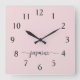 Flickigt enkel minimalistisk rosé monogramnamn i typsnittsstil Personlig fyrkantig väggklocka. Dessa mönster har ditt förnamn i en vacker handskriven svansfont med typografi i rosé eller dammig rosa. Dessa är lätta att anpassa. Fin stilfull och feminin husvärmegåva, även till födelsedag, bröllop, brudshow, mors dag, 16-årsfest och baby shower, examen och den är till flickan som älskar unika och stiliga saker.