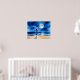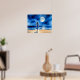 Poster i en illustration av en ensam ung kvinna i en blå klänning som står kant på en strand och som tittar på fullt och reflekterar över havet. Serennatten i himmel är full av stjärnor.