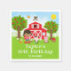 Den söta och roliga servetten visar en brunhårig flicka med mörk hud bredvid en röd lada med en väderflöjel i form av en tupp. Det finns söta lantdjursdjur som en ko, gris och höna. I bakgrunden syns en klarblå himmel, äppelträd, solsken, fjärilar och tusenskönor. Texten kombinerar feta och sans-serif-teckensnitt för en stilren och modern look. Detta är perfekt för en lantbruks-inspirerad födelsedagsfest.