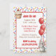En söt inbjudan till tjejens födelsedagsfest med ett sött tema med mus och muffins. Rosa, beige och körsbärsröda strössel på en söt vaniljmuffins som hålls av en akvarellmus!